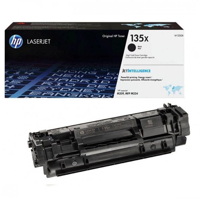 Hp 135X (W1350X) on musta alkuperäinen värikasetti, tulostuskapasiteetti 2500 sivua. Sopii HP LaserJet M209dw, HP LaserJet M209dwe, HP LaserJet MFP M234dw ja muihin -tulostimille. Alkuperäinen OEM-kasetti takaa parhaan tulostuslaadun ja täyden yhteensopivuuden.