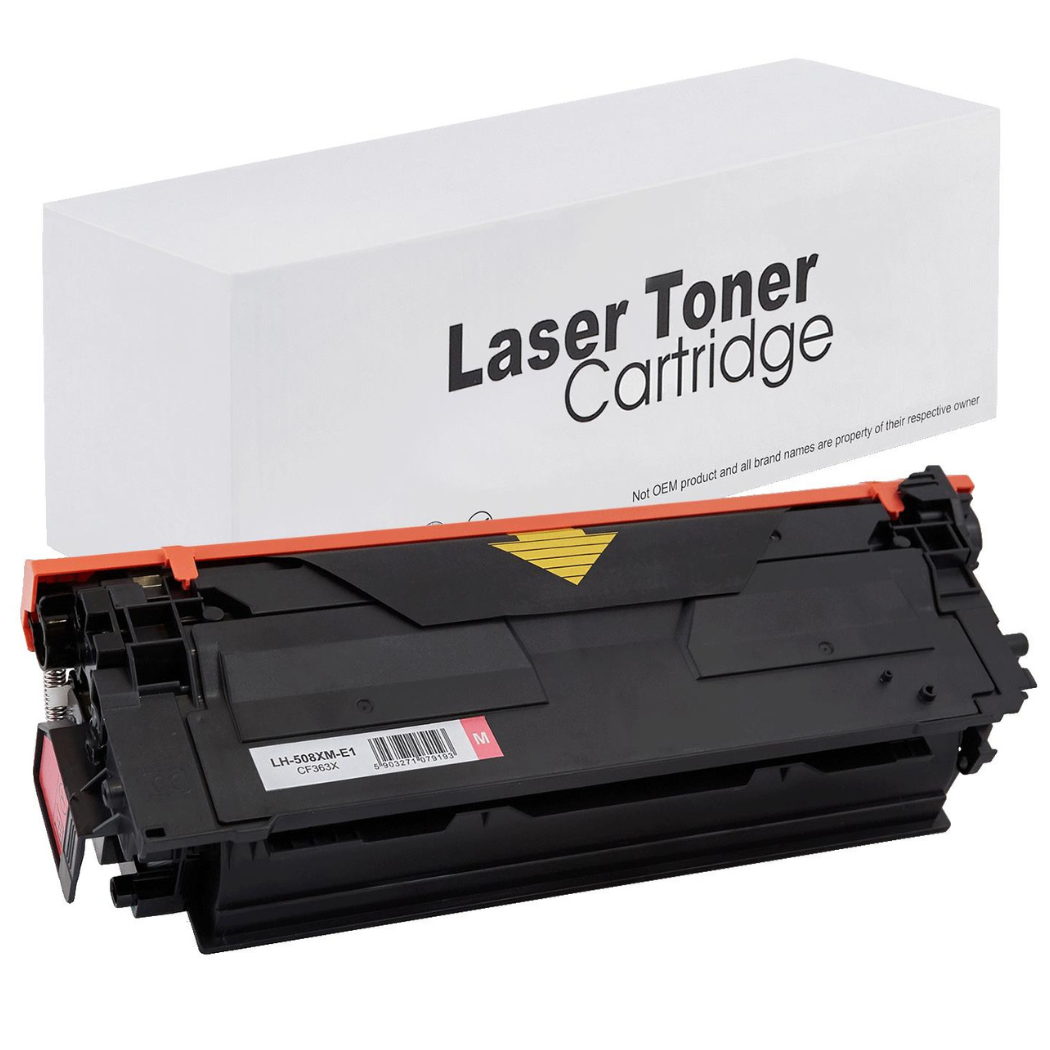 Hp 508A (CF363A)A on magenta yhteensopiva värikasetti, tulostuskapasiteetti 5000 sivua. Sopii HP Color LaserJet Enterprise Flow MFP M577c, HP Color LaserJet Enterprise M552dn, HP Color LaserJet Enterprise M553 ja muihin -tulostimille. Laadukas yhteensopiva kasetti – erinomainen hinta-laatu-suhde.